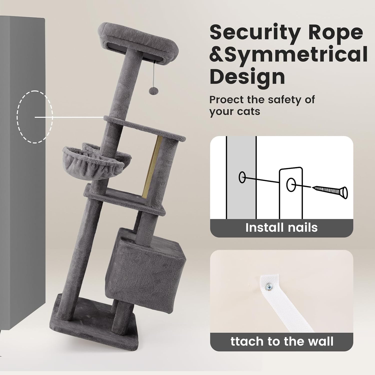 Gardner Pet 65in Heavy Duty Cat Tree Tower for Large Cats, Multi-Level Cat Furniture with Replaceable Sisal Scratching Post, Hammock | Extra-Large Platform & Condo (Upgraded Grey)