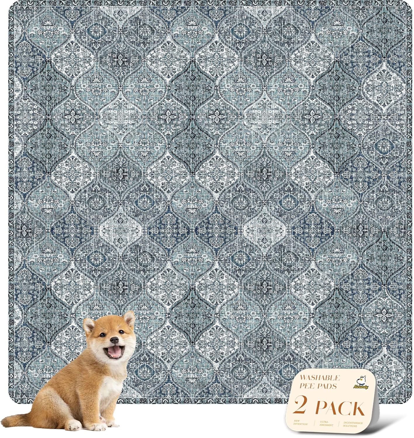 nunubaby Washable Pee Pads for Dogs, Stylish, Non-Slip and Leak-Proof Pee Pads. Reusable Potty Pads for Dogs for Crates and Floors.(Blue/Multi, 54" x54" )