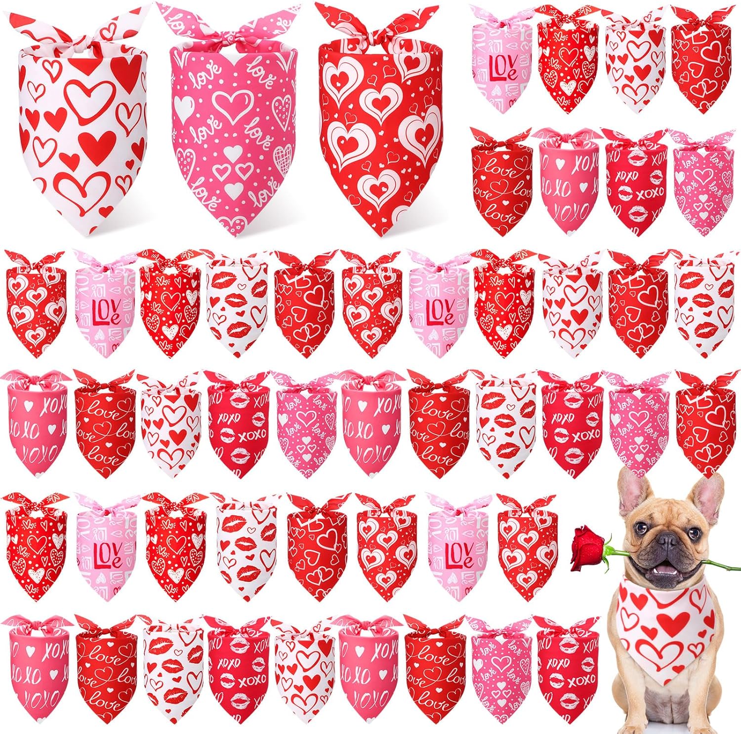 - Sufficient Quantity: there are 50 pieces valentine bandanas for dogs in 10 different designs, 5 pieces each style, enough quantity can meet your pet's valentine's day decoration needs and replacement or share with your family and friends who have lovely pets