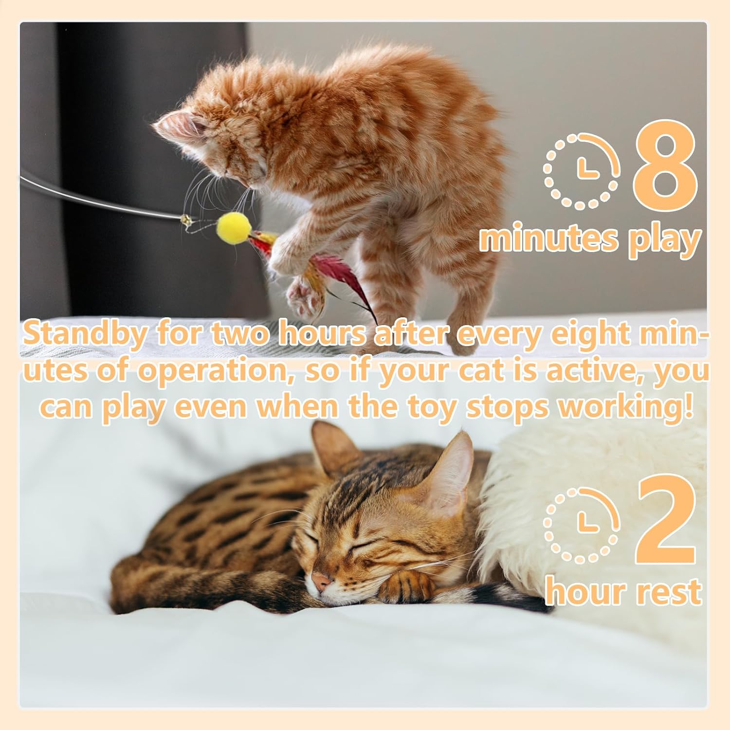 - LONG LIFE: Cat enrichment toys made of safe and environmentally friendly material, it will not affect the cat's health, the cat teaser will stop at irregular intervals to prevent the cat from exercising too much