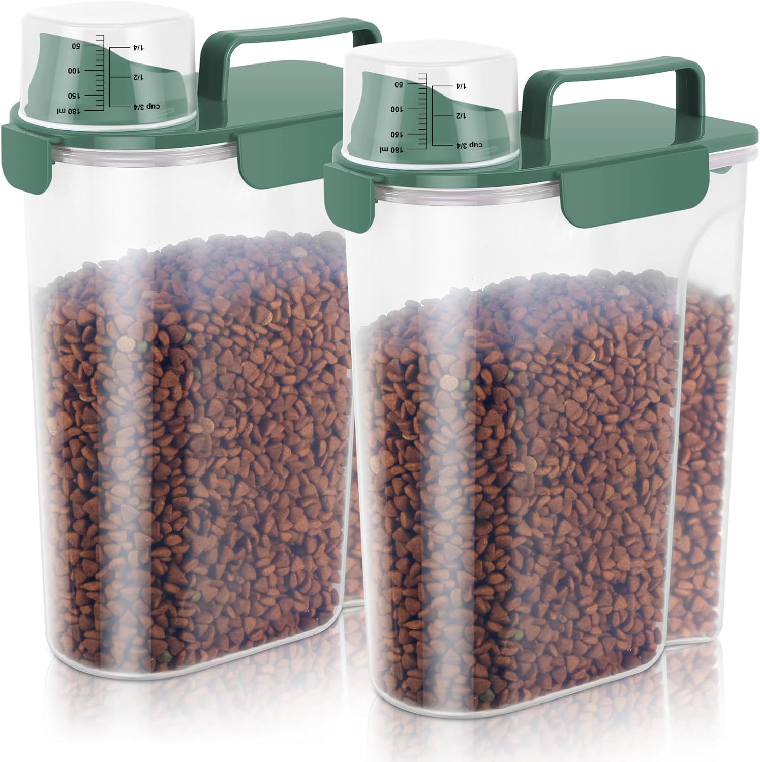 5lbs Cat Dog Storage Container Portable with Upgraded Large Spout and Cup, Plastic Pet Food Dispenser BPA-Free for Small Animal Kibble, Bird Seed, Oatmeal, Rice, Flour, Brown Sugart-2 Set Royal Green