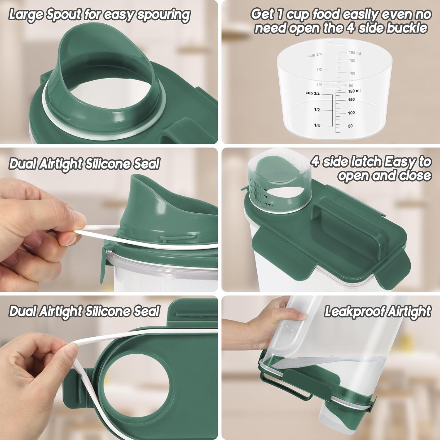 - BENEFITS : Upgraded Large Pour Spout with Measuring Cup-We upgraded the mold so that the pour spout is large enough to pour out large dog food.You can now pour food easily and quickly.The newly upgraded measuring cup can now also be easily screwed onto the nozzle。