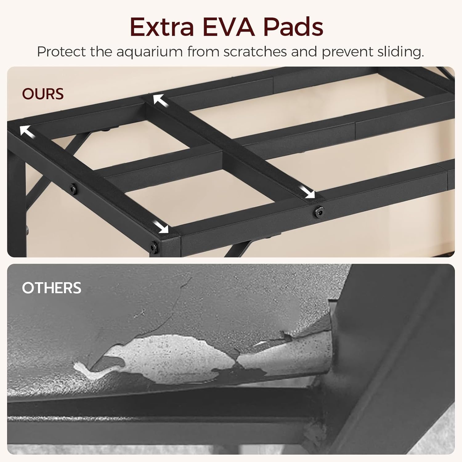 - Sturdy Build: The 30 gallon fish tank is made of heavy-duty metal, with a top cross-frame for stability and corner triangles for extra strength. The top covered with EVA pads keeps your aquarium from slipping, making it a reliable choice to support your tank