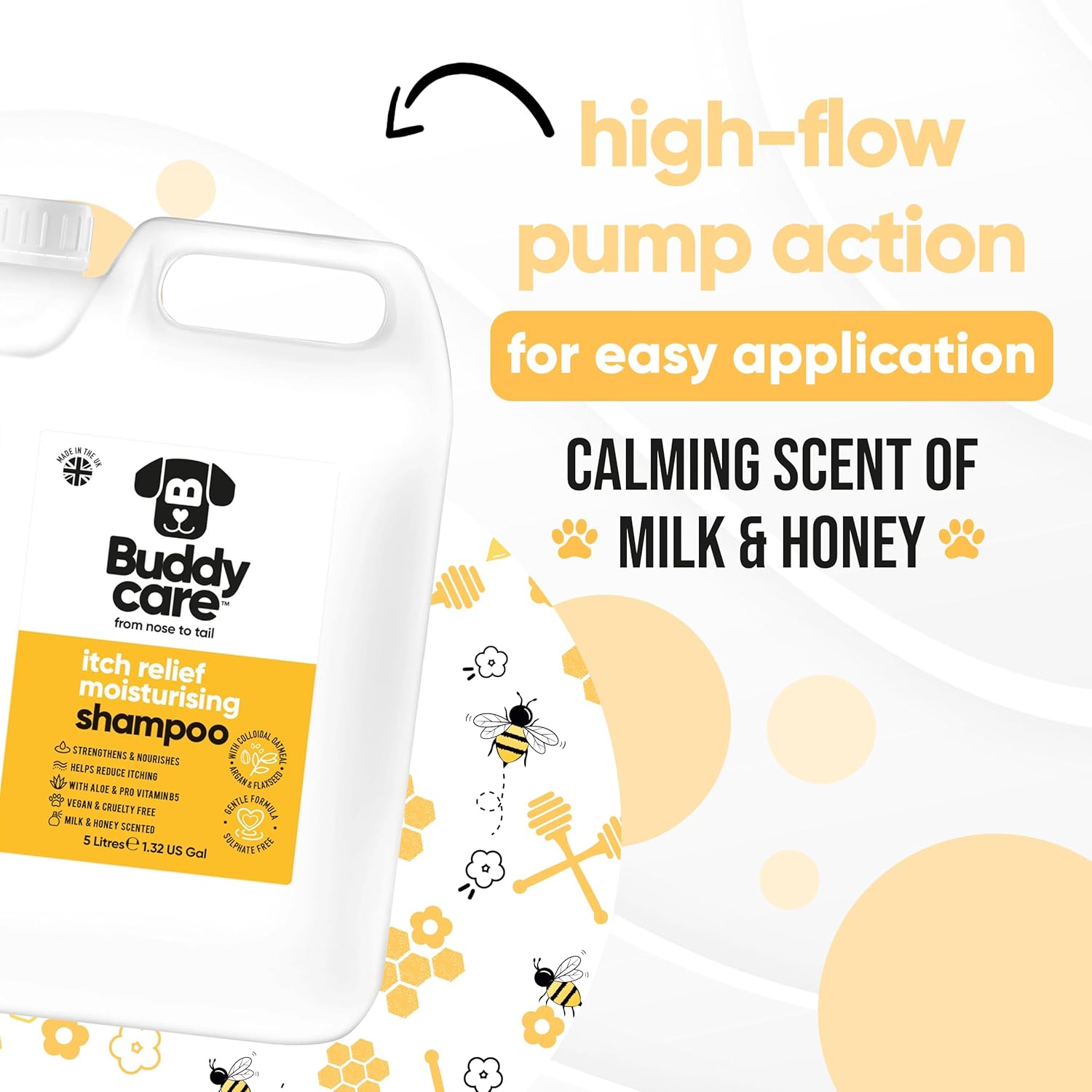 Itch Relief Dog Shampoo by Buddycare | Deep Cleansing Shampoo for Dogs | Fresh Scented | with Aloe Vera and Pro Vitamin B5 (169.07oz)