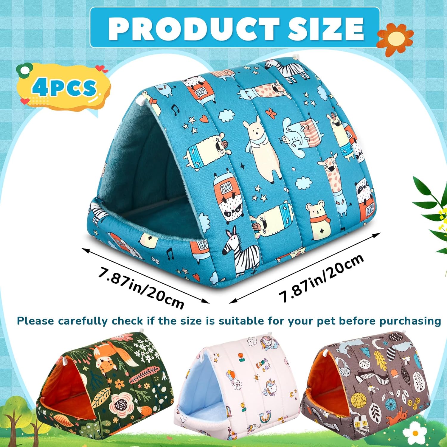 - Stylish and Multi Pattern Comfort Shelters: experience the joy of providing your guinea pigs with a safe and comfortable home; With our 4-piece set of multi-patterned, bright, and beautiful shelters, you can ensure a cozy environment for your pet while adding a splash of color to their living space; These shelters allow for seamless changeovers, making them the good choice for long-term needs and replacements
