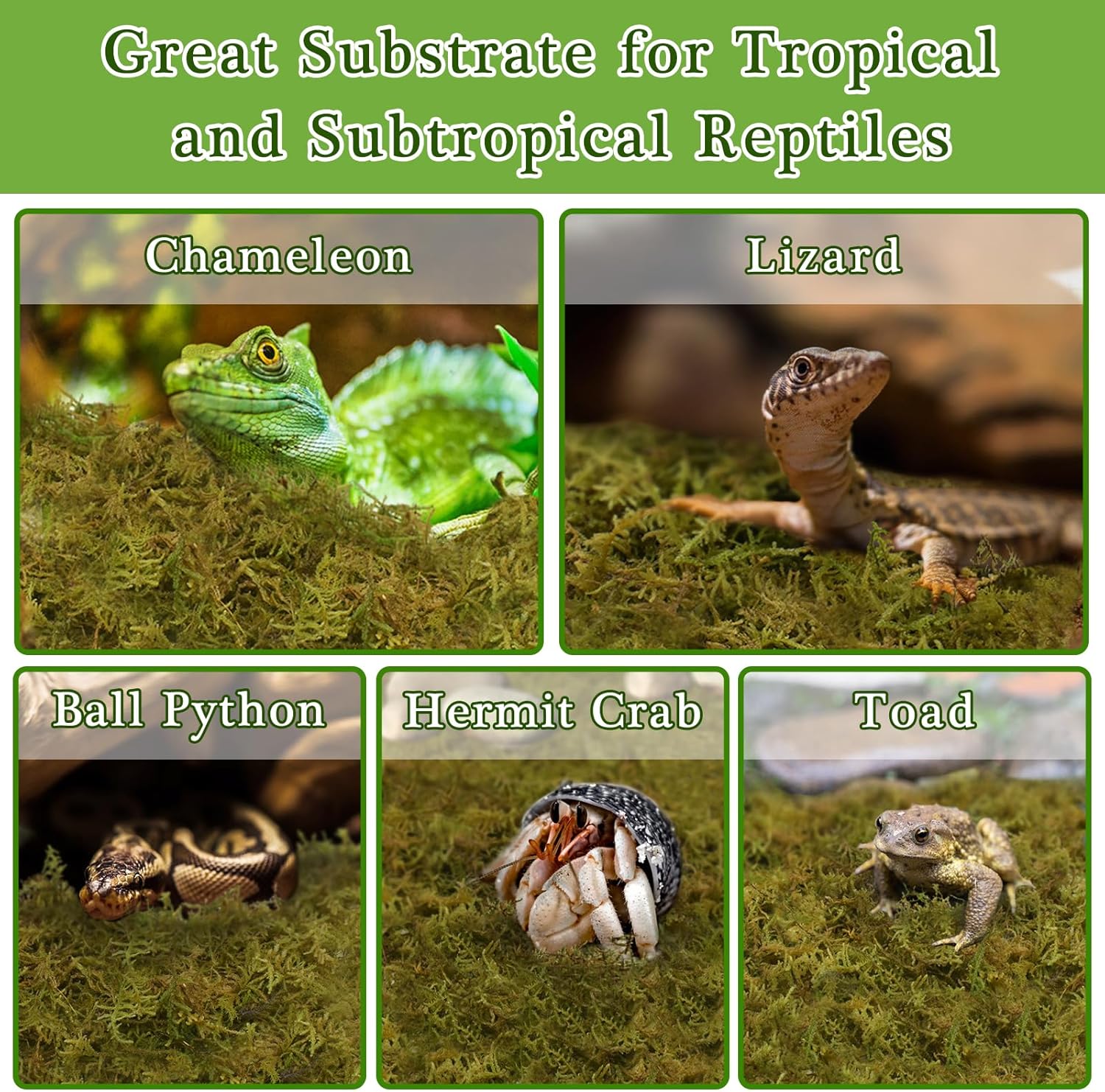 - Great Humidity Retention & Breathability: This terrarium moss is fluffy and absorbent, can provide a moist living environment for your reptiles. The moss also has an insulating effect, which will help the reptiles have a safe and cozy winter.