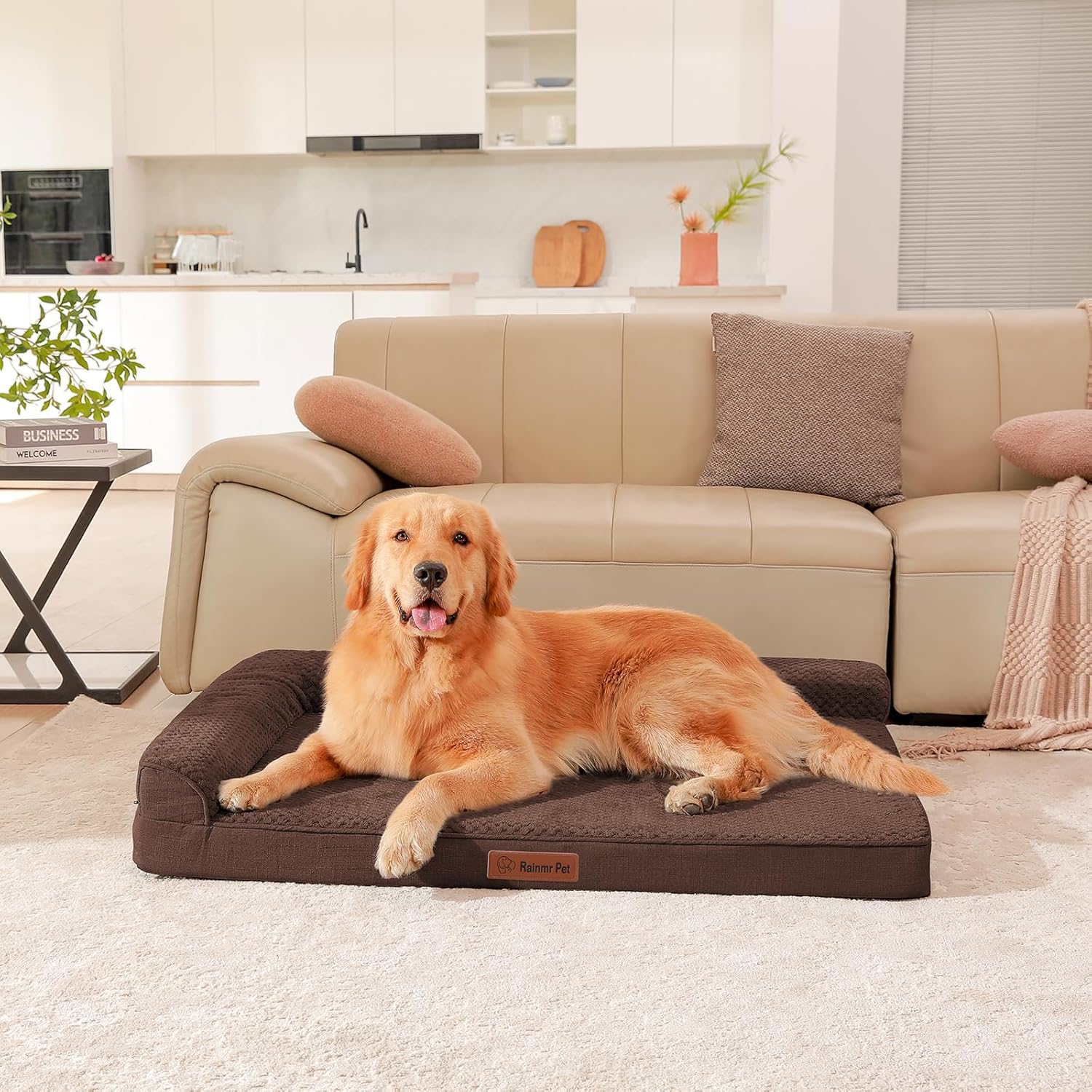 Orthopedic Dog Bed, 3 Inch Memory Foam Dog Beds for Large Dogs, Washable Removable Cover, Nonskid Bottom, Waterproof Pet Couch for Indoor, Outdoor or Car Use, 44x32 Inches XXL Brown Grey