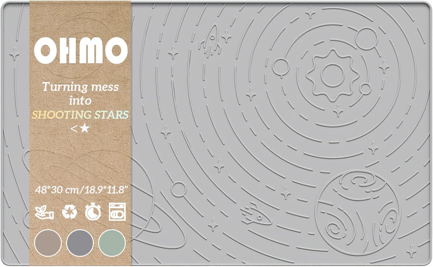 OHMO Dog Food Mat, Silicone Waterproof Cat Food Mat, Non-Skid Spill Proof Pet Feeding Mat for Food and Water, Easy to Clean Dog Placemat(Ash, 18.9" x 11.8")