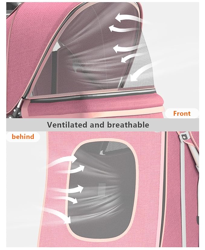 - [Sturdy and Safe] - Our pet stroller is equipped with breathable mesh windows that allow your furry friend to see and breathe easily. The Oxford cloth material is water-resistant and durable, ensuring your pet's safety and comfort.
