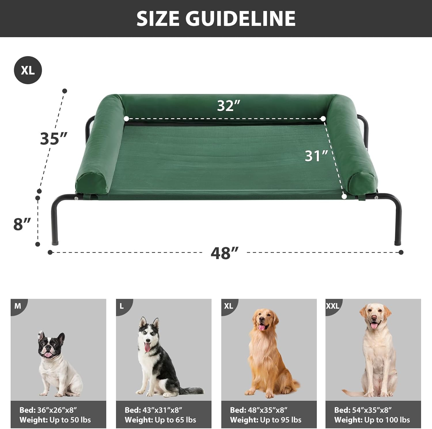 RRPETHOME Large Elevated Cooling Dog Bed, Raised Dog Cot Beds for Large Dogs, Elevated Outdoor Pet Bed, Chew Proof Portable Cooling Pet Cot with Skid-Resistant Feet and Breathable Mesh