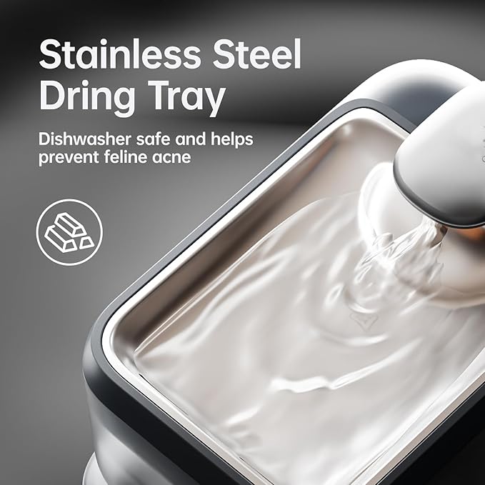 - Hygienic Stainless Steel Tray and Quiet Pump – Rust-resistant tray is durable and easy to clean. Ultra-quiet water pump runs below 35dB for a peaceful environment.