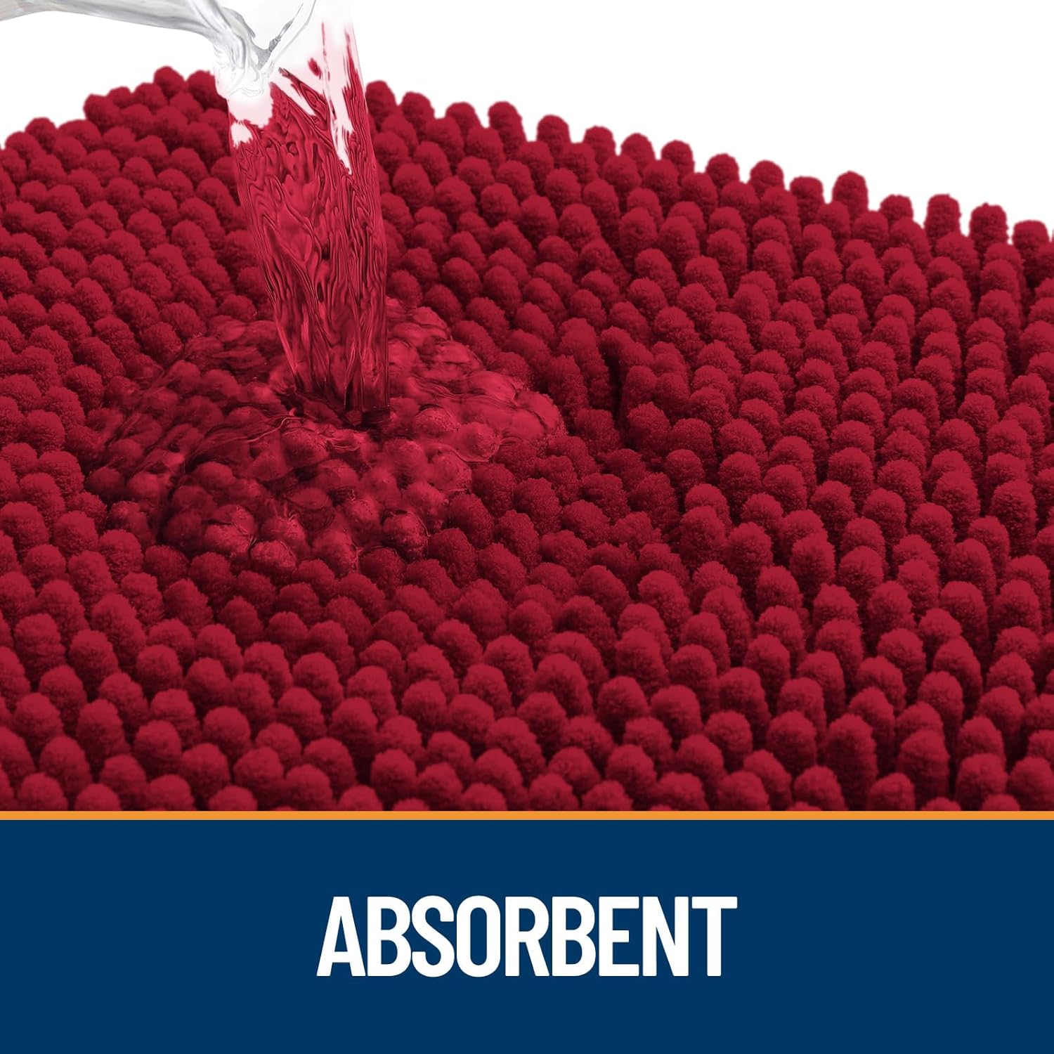 OLANLY Dog Door Mat for Muddy Paws 34x21, Absorbs Moisture and Dirt, Absorbent Non-Slip Washable Doormat, Quick Dry Chenille Mud Mat for Dogs, Entry Indoor Entryway Carpet for Inside Floor, Red