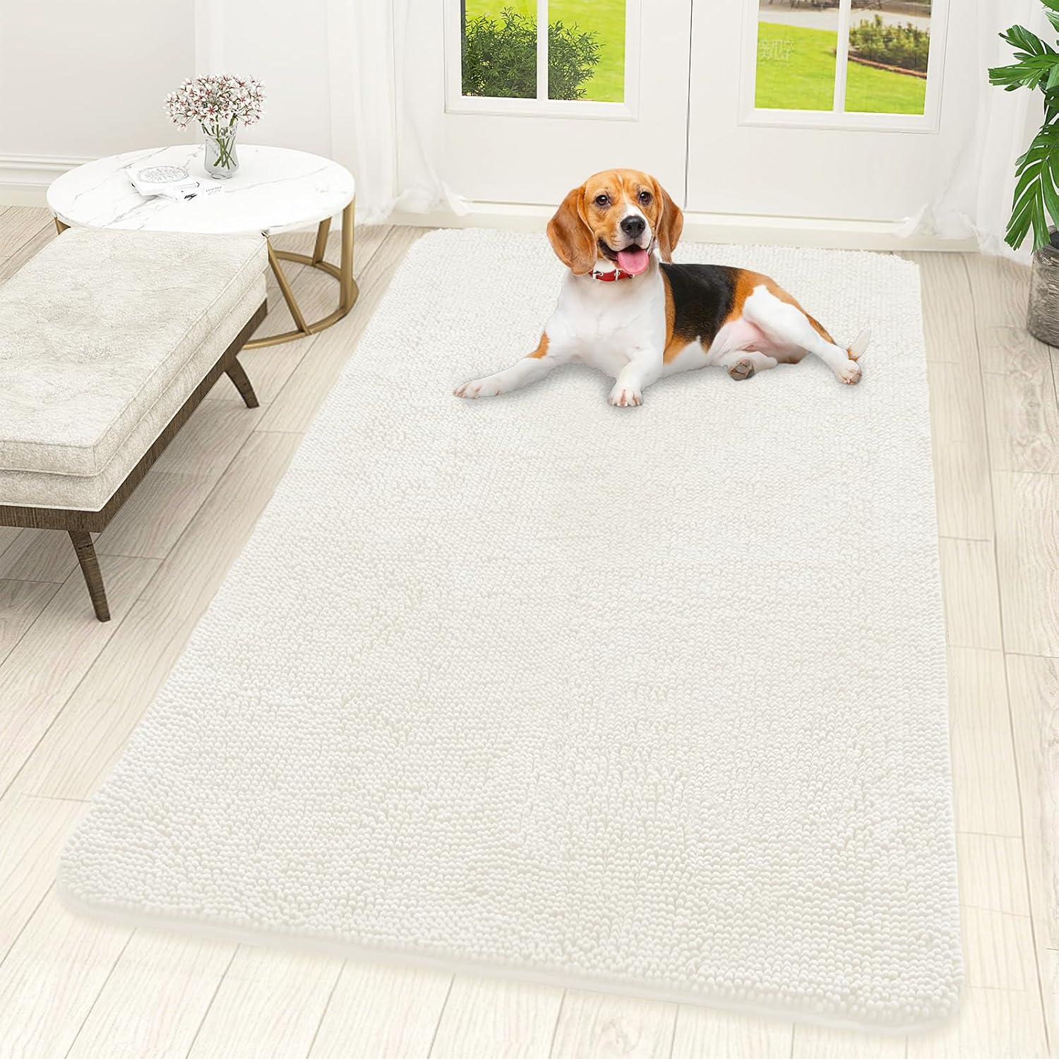 OLANLY Dog Door Mat for Muddy Paws 59x32, Absorbs Moisture and Dirt, Absorbent Non-Slip Washable Doormat, Quick Dry Chenille Mud Mat for Dogs, Entry Indoor Entryway Carpet for Inside Floor, Ivory