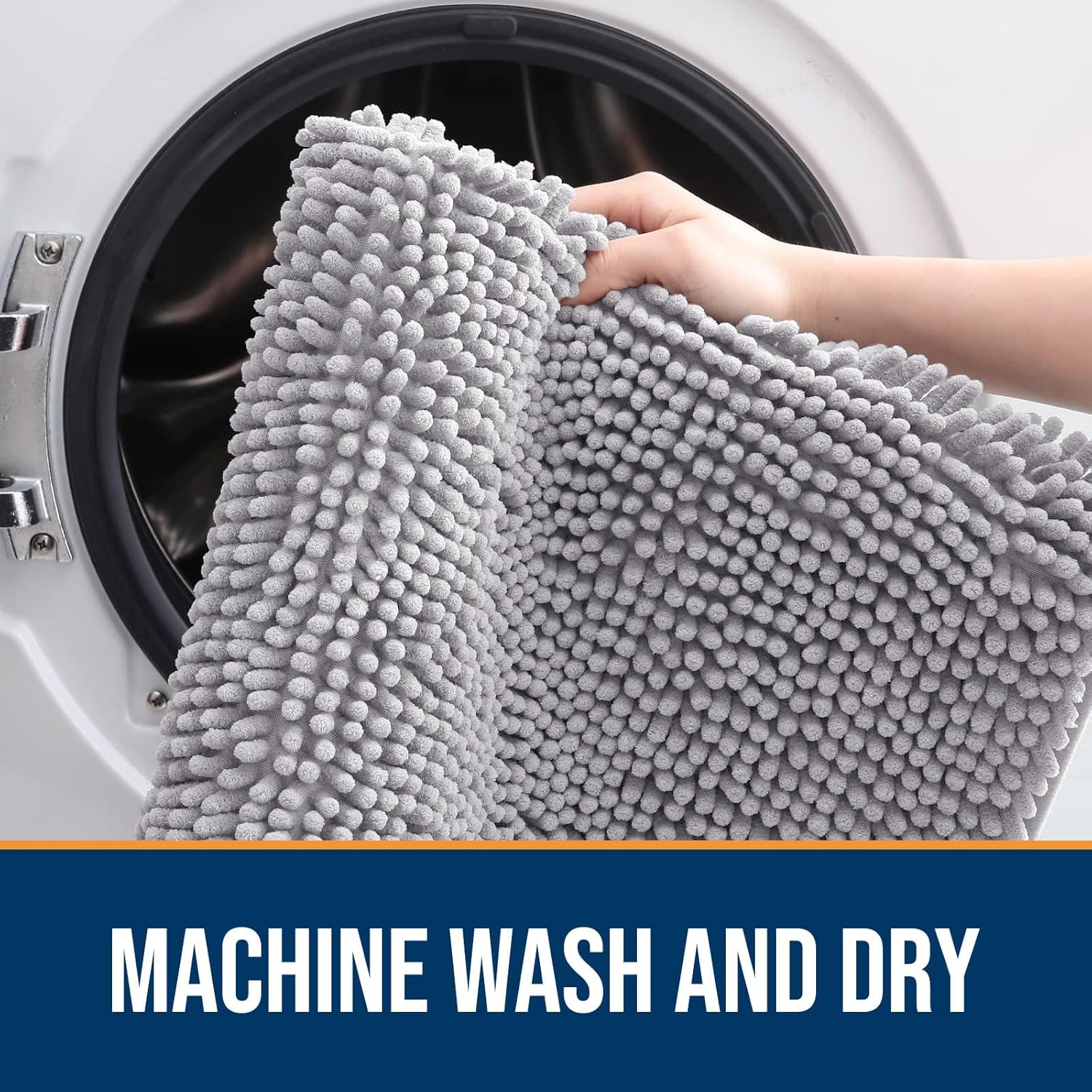 OLANLY Dog Door Mat for Muddy Paws 54x24, Absorbs Moisture and Dirt, Absorbent Non-Slip Washable Doormat, Quick Dry Chenille Mud Mat for Dogs, Entry Indoor Entryway Carpet for Inside Floor, Light Grey