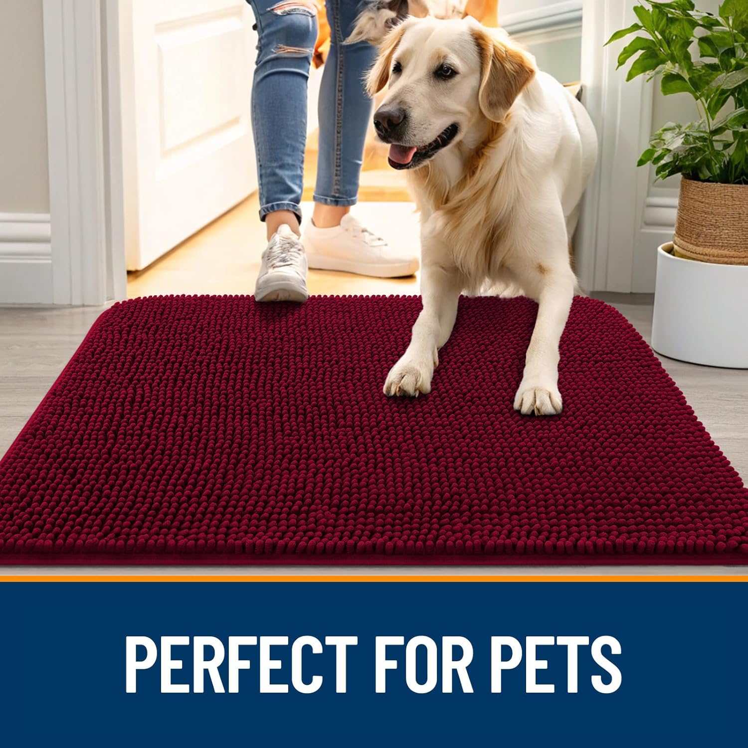 OLANLY Dog Door Mat for Muddy Paws 70x35, Absorbs Moisture and Dirt, Absorbent Non-Slip Washable Doormat, Quick Dry Chenille Mud Mat for Dogs, Entry Indoor Entryway Carpet for Inside Floor, Burgundy