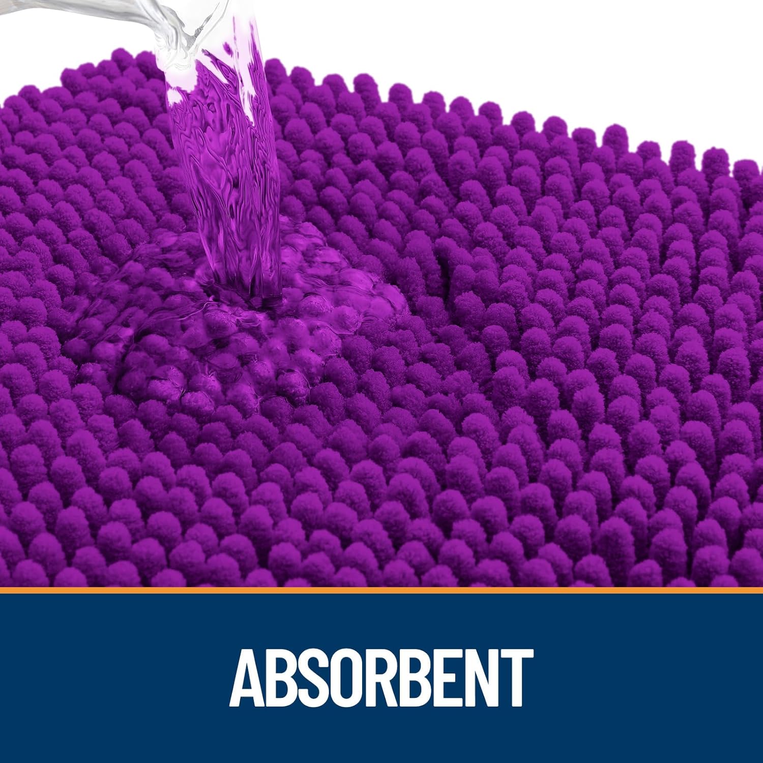 OLANLY Dog Door Mat for Muddy Paws 59x20, Absorbs Moisture and Dirt, Absorbent Non-Slip Washable Doormat, Quick Dry Chenille Mud Mat for Dogs, Entry Indoor Entryway Carpet for Inside Floor, Purple