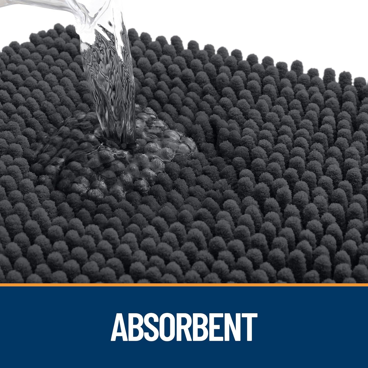 OLANLY Dog Door Mat for Muddy Paws 30x17, Absorbs Moisture and Dirt, Absorbent Non-Slip Washable Doormat, Quick Dry Chenille Mud Mat for Dogs, Entry Indoor Entryway Carpet for Inside Floor, Dark Grey