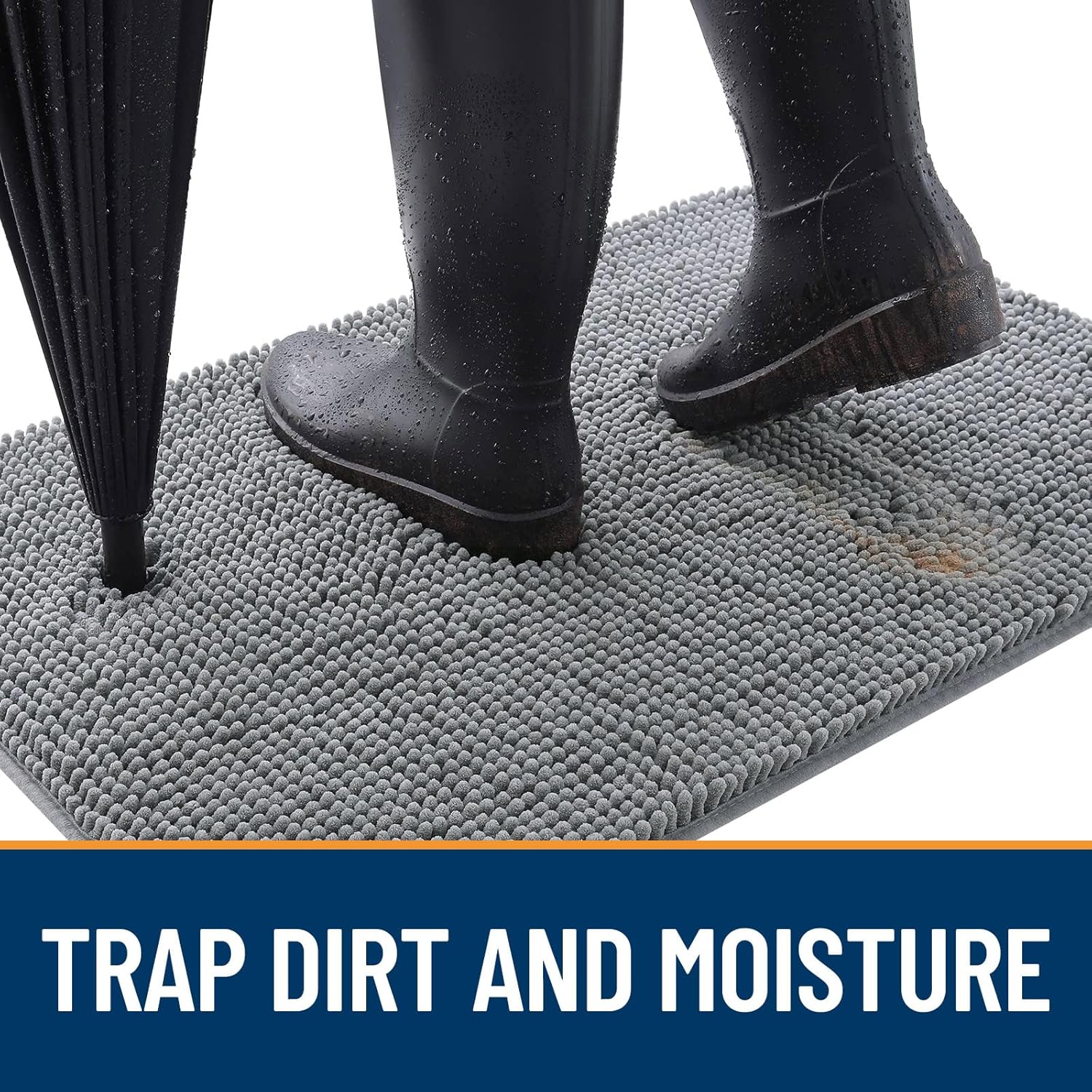 OLANLY Dog Door Mat for Muddy Paws 34x21, Absorbs Moisture and Dirt, Absorbent Non-Slip Washable Doormat, Quick Dry Chenille Mud Mat for Dogs, Entry Indoor Entryway Carpet for Inside Floor, Grey