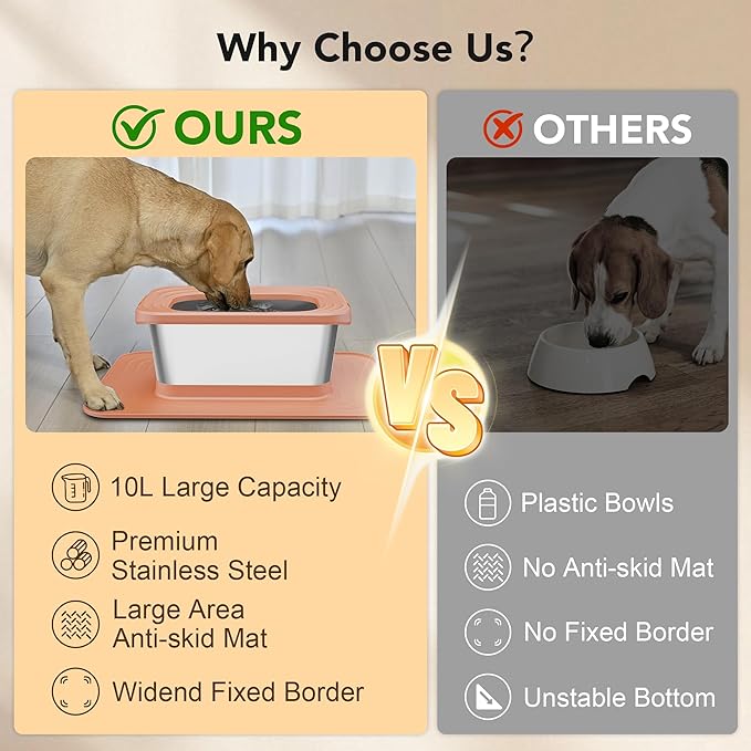 - Double Anti-skid Design: Our 20"x 15" silicone base with extended edges offers 3X grip compared to standard bowls. Securely anchors during enthusiastic drinking to protect floors and reduce mess