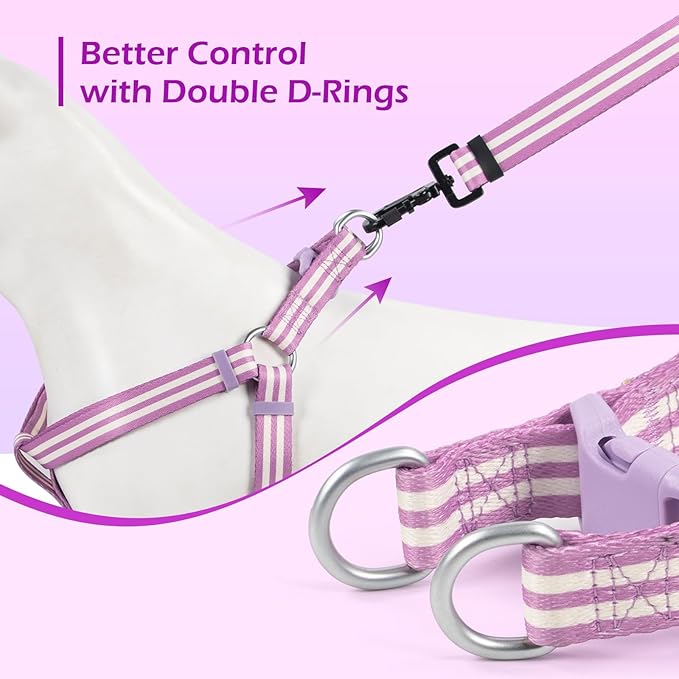 Stripe Step in Dog Harness for Small Dogs, Freedom Nylon Dog Halter Vests, Lightweight and Escape Proof Puppy Harness, Quick Fits for Small Medium and Large Dogs, Purple XS