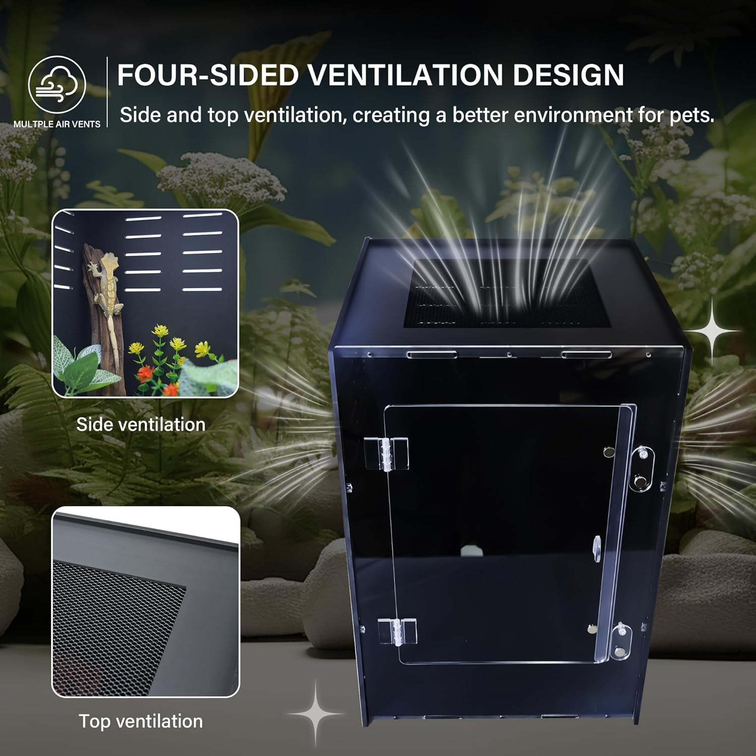 Reptile Enclosure for Crested Gecko – 12x12x18 Acrylic Reptile Tank for Gecko, Snake, and Lizard – PVC Terrarium for Small Pets