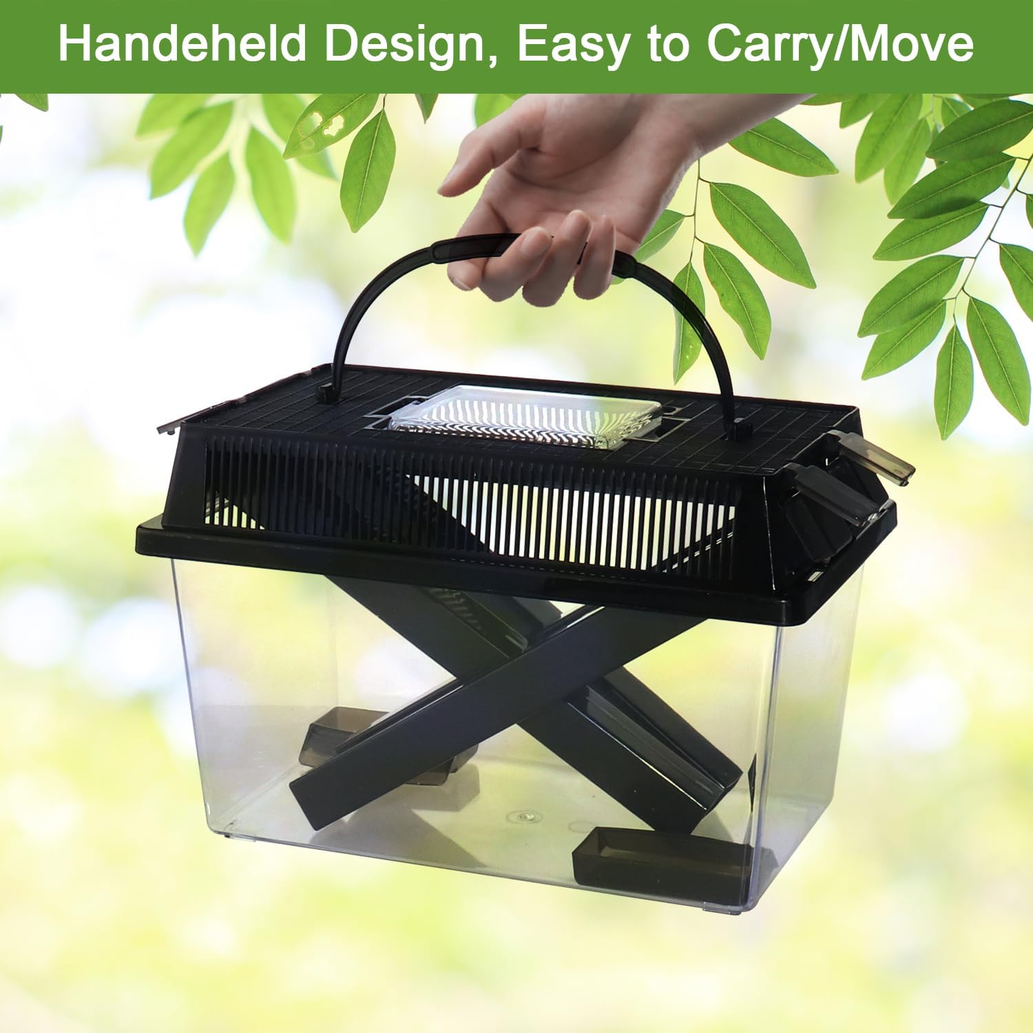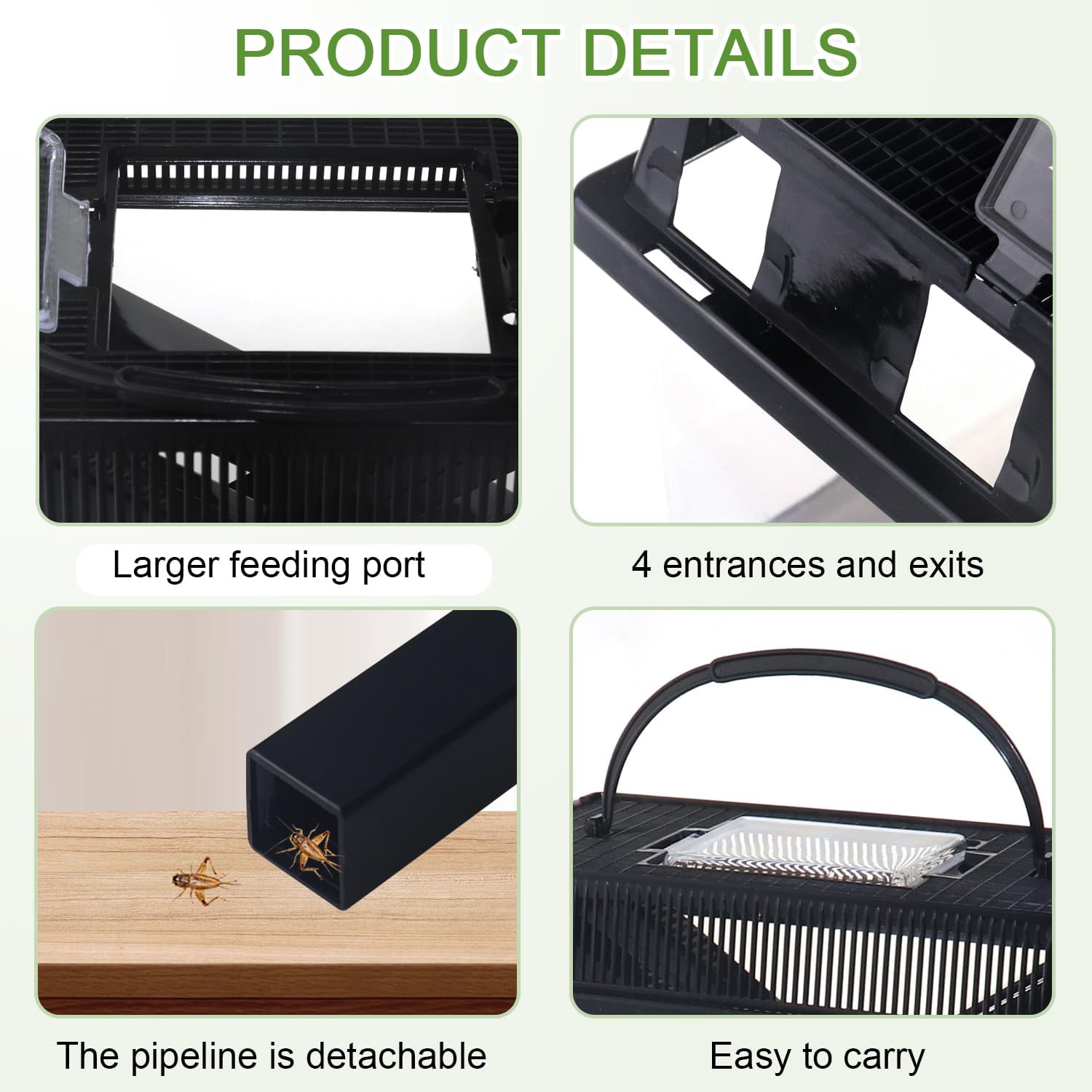 NANEEZOO Cricket Keeper, Equipped with Water & Food Feeding Dish, High Transparency Cricket Pen with Dispenser Tubes, Insect Keeper for Gecko Snake Lizards Reptiles (Large)