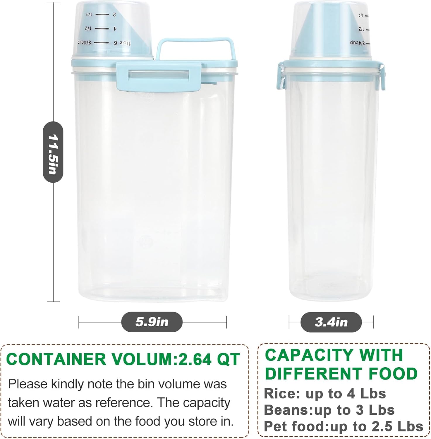 TBMax Rice Storage Container 2 Pack, Plastic Kitchen Pantry Food Storage Container with Cup, Small Pet Dog Cat Food Container Dispenser - Sky Blue