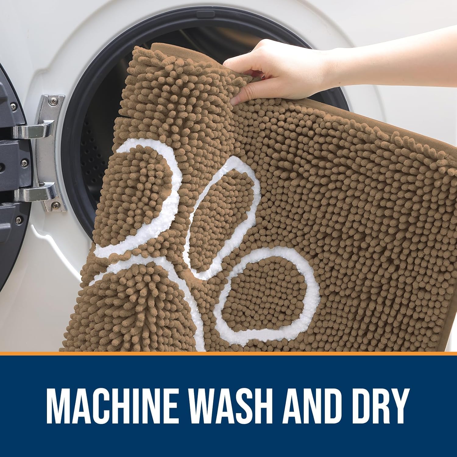 OLANLY Door Mat for Muddy Dog Paws 40x32, Ultra Absorbent Chenille Mud Doormat with Paw Print Design, Non-Slip Washable Doormat for Indoor Entryway, Quick-Dry Pet Bed Mats for Dirty Dogs, Tan