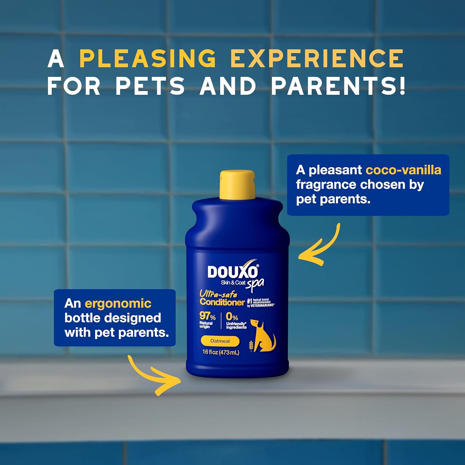 - ULTRA-SAFE HYPOALLERGENIC SKIN-FRIENDLY CLEANSING: DOUXO Skin & Coat SPA oatmeal conditioner gently moisturizes and nourishes your dogs skin and detangles the coat, leaving it soft, silky and radiant after every use.