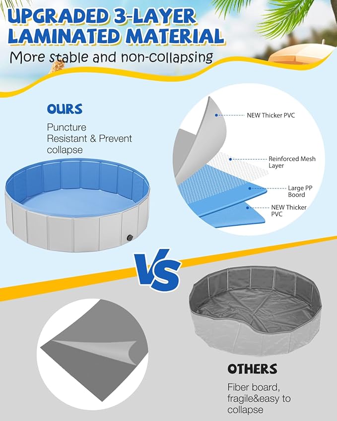 - PORTABLE & CONVENIENT – The dog bath pool is portable and convenient for people to carry and store at any time, which allows your lovely pets to enjoy in the water; There is no need to inflate