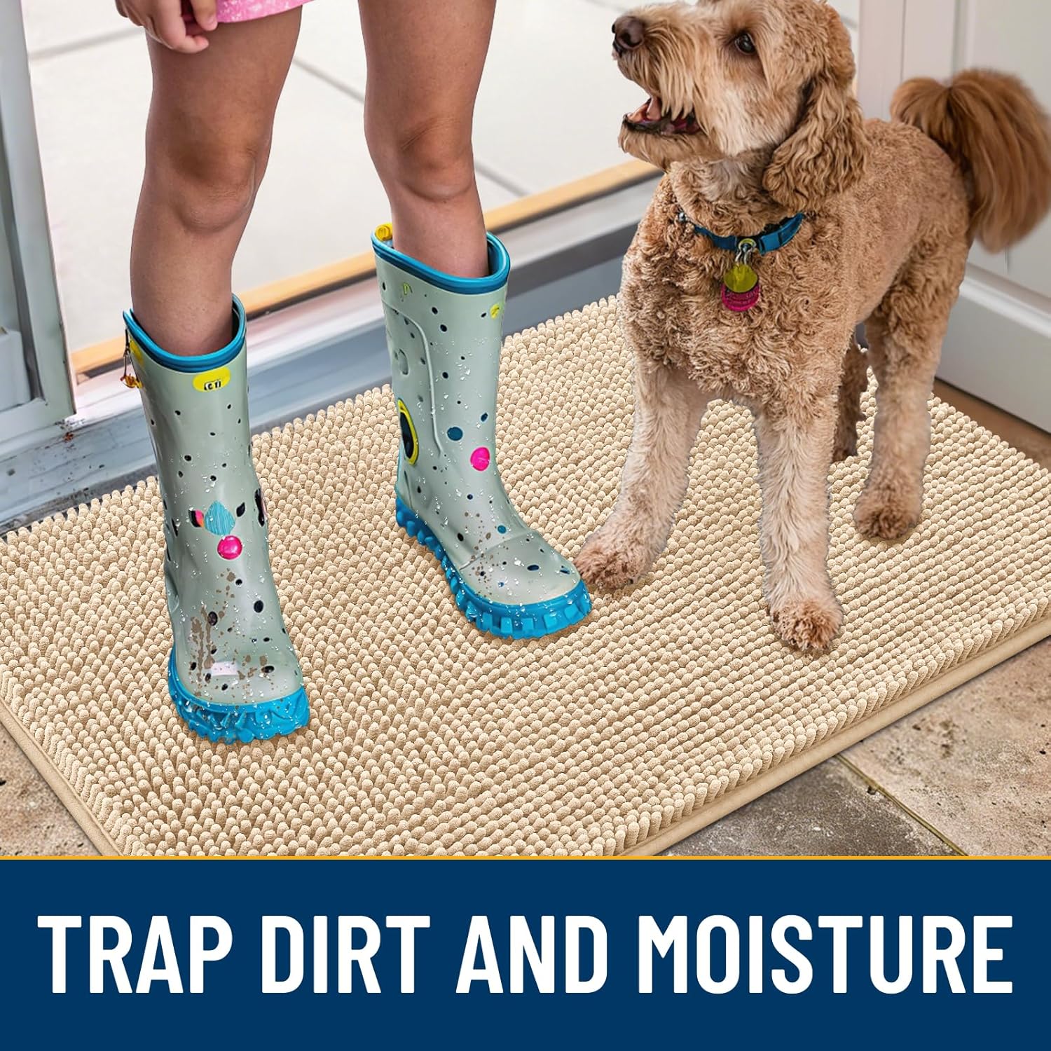 Smiry Dog Door Mat for Muddy Paws 40x32, Absorbs Moisture and Dirt Doormat, Non-Slip Washable Quick Dry Chenille Front Door Mat Indoor Entrance, Entryway Carpet for Inside Floor, Beige
