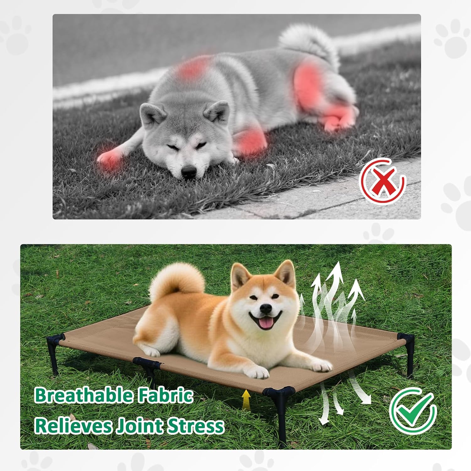 - BREATHABLE TESLIN MESH: This outdoor dog bed comes with breathable and durable Teslin mesh, provides airflow and firm support to relieve joint pressure. Our dog cot bed is suitable for dogs of all life stages, from puppy to the senior