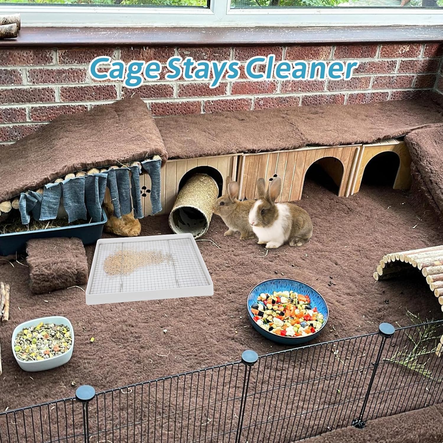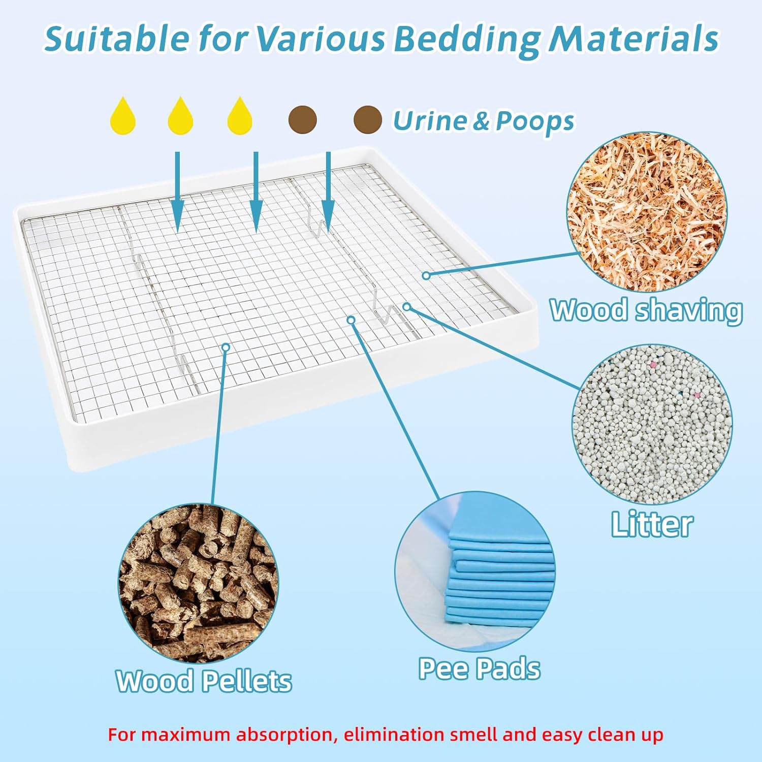 - How to stay cleaner: Small animal litter pan is deep enough to have a layer of wood pellets for bedding; Use a pee pad & bedding under the mesh for maximum absorption and easy clean up; Put some non-scented all natural kitty litter in the tray as well so their pee will clump there; Also put some carbonated litter powder inside that definitely helps with the smell