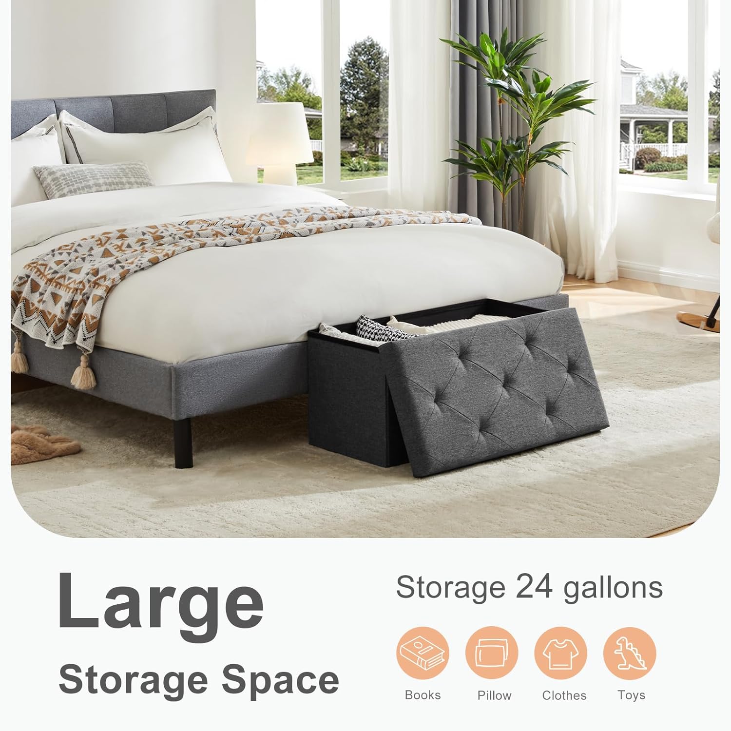 Sweetcrispy 30 Inches Folding Storage Ottoman Bench, Large End of Bed Foot Rest Stools Ottoman Storage Chest with Padded Seat for Bedroom, Living Room, Entryway, Holds up to 660 lb, Deep Grey
