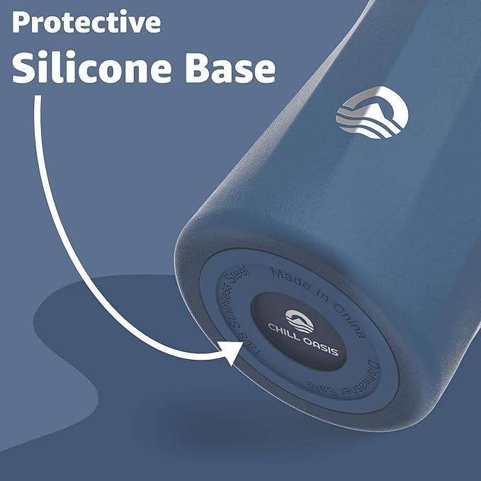 Chill Oasis Water Bottle | Compatible With Popular Flavor Cartridges | BPA Free, Leak Proof, Double-Walled Vacuum Insulated Stainless Steel, and Dishwasher Safe | Cold for 24 Hours (Navy, 32oz)