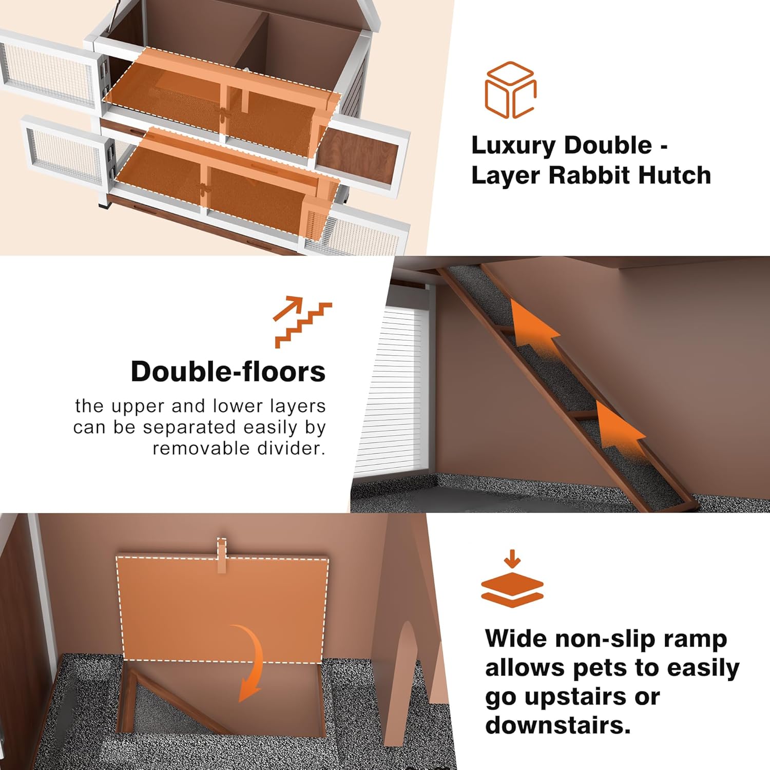 - Convenient Two-Level Layout: The hinged trap door separates the upstairs from the downstairs, allowing versatile use for multiple pets or easy care for individual animals. Ideal for rabbits, guinea pigs, chinchillas, and small chicks.