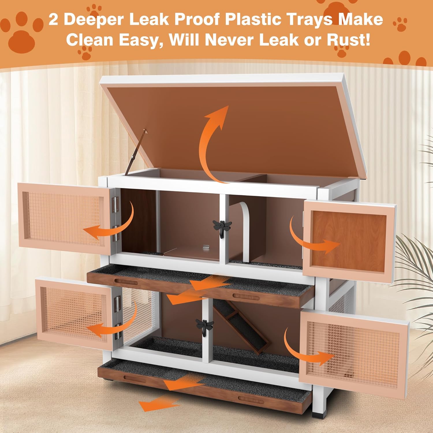 - Easy Cleaning Design: Features two quality plastic pull-out trays that are leak-proof and rust-resistant, making cleaning hassle-free and maintaining a sanitary environment for your pets.
