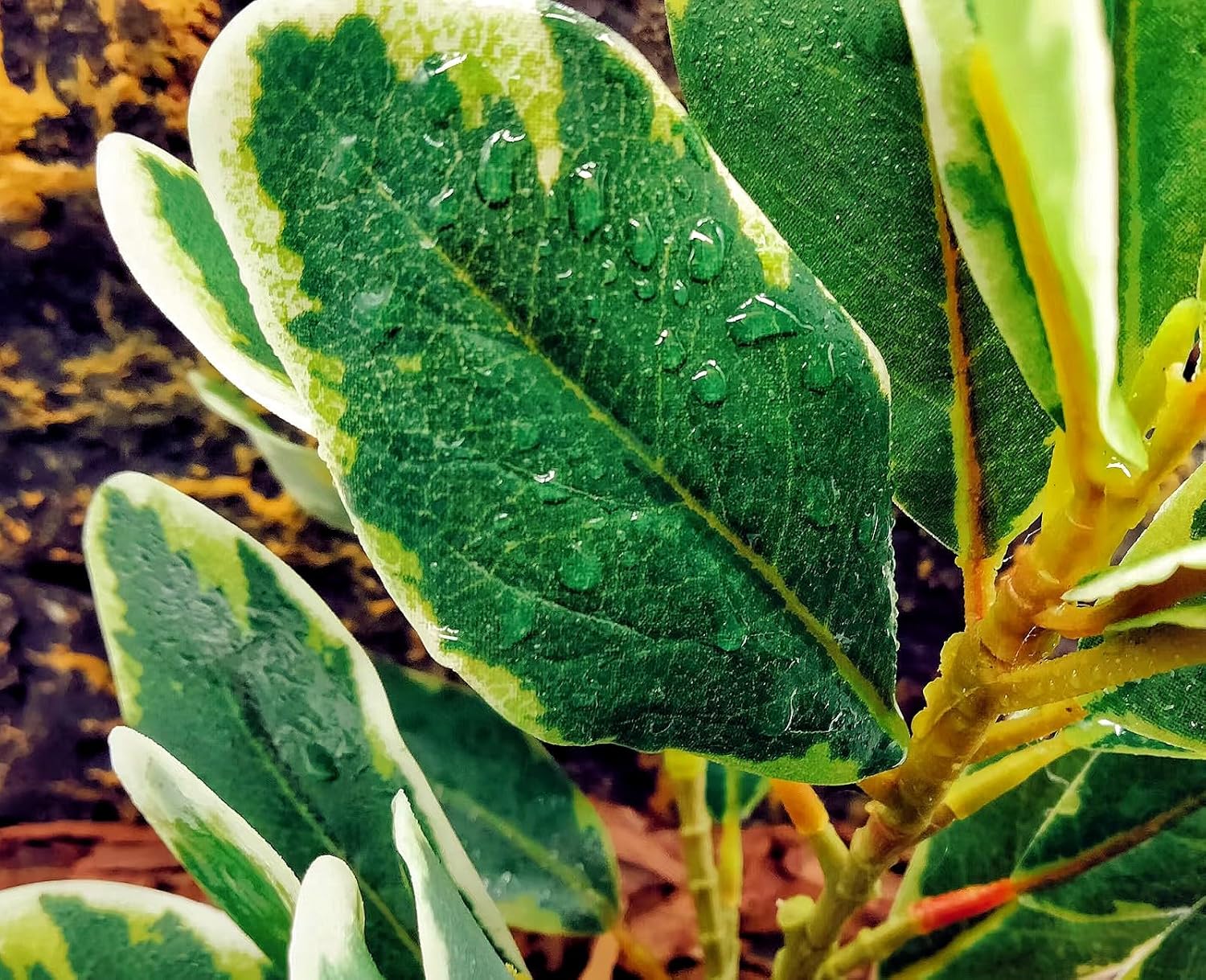 - EASY MAINTENANCE - It’s easy to clean,effortlessly clean and maintain by simply wiping with a damp cloth, eliminating the hassle of caring for live plants. It’s waterproof , holds water droplets well for any creatures that only drink from dew and water droplets, such as chameleons and some geckos