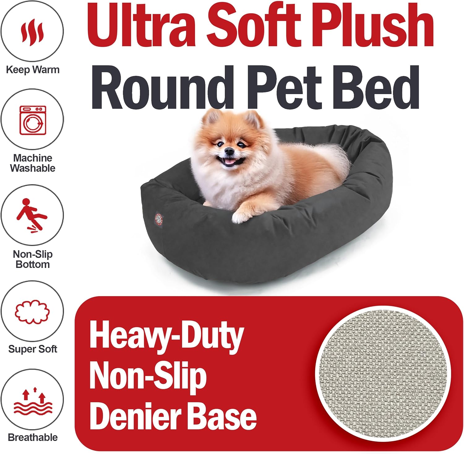 - [Elegance meets durability] - Crafted with premium high-loft polyester fill, the Majestic Pet dog bed offers a regal sleeping experience, lasting quality, and exceptional loft and coziness. The cushioned pillow adds an extra layer of comfort to pamper your pet. No more compromising on comfort, style, or ease of cleaning. Upgrade your pet's lifestyle today with our round dog bed.