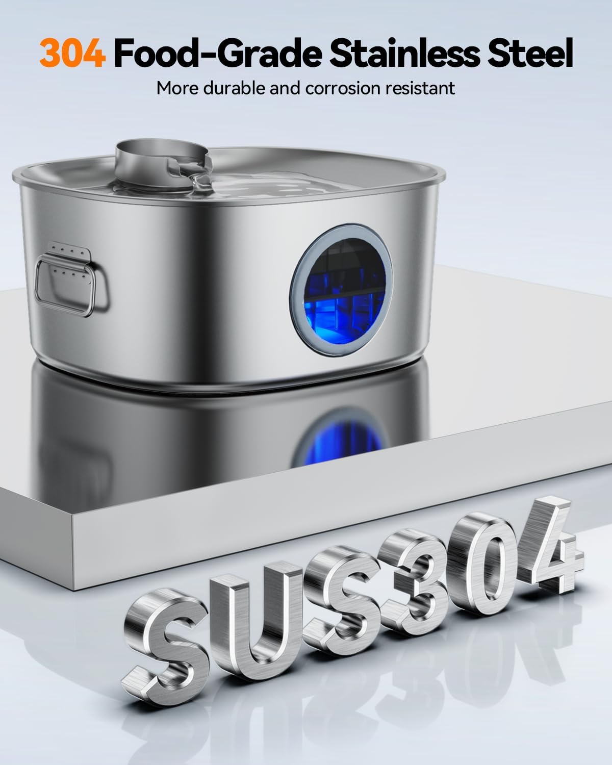 - 【 SUS304 Stainless Steel 】The water fountain for dogs inside made of 304 stainless steel, which is durable, rust and corrosion-resistant, and BPA-free. Ensuring a clean and safe water source for your furry-kids.