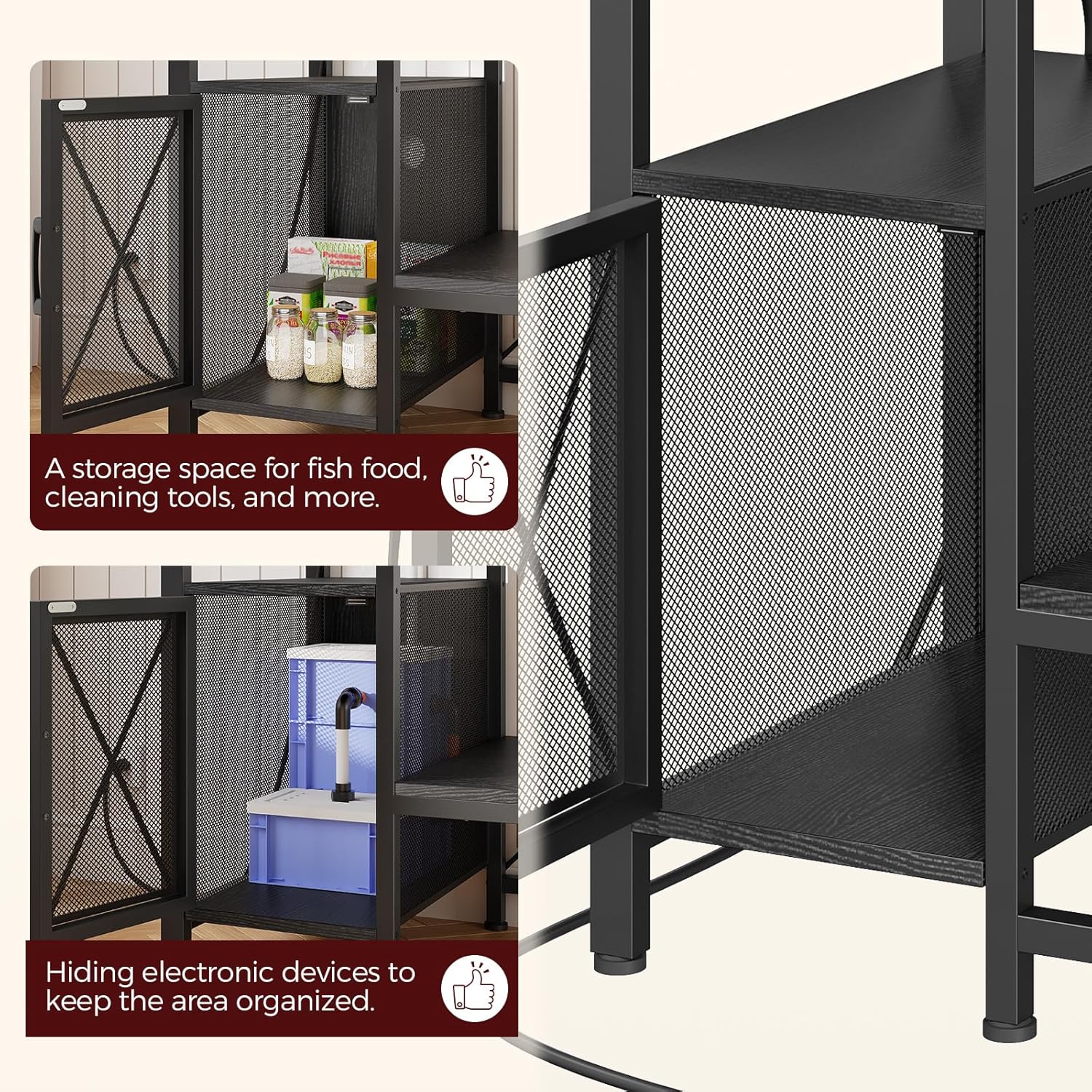 - Ample Storage: The fish tank stand with storage cabinets and shelves provides the right space for filters, tubing, fish food, etc., while the open shelves are functional for displaying accessories. Keep your aquarium area tidy and functional with everything at your fingertip
