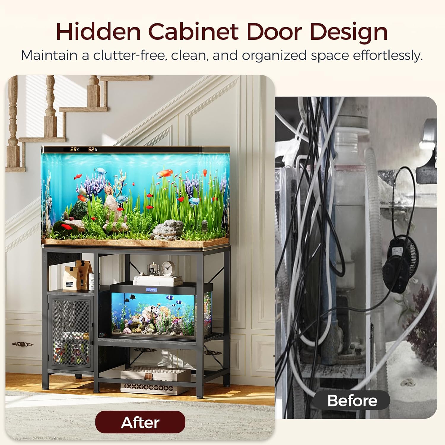 - Easy Power Solution: The fish tank stand, designed for 40-50 gallon tanks, includes 2 AC outlets and 2 USB ports, making it perfect for powering aquarium electronics such as lights and filters. Simplify aquarium maintenance with a handy socket