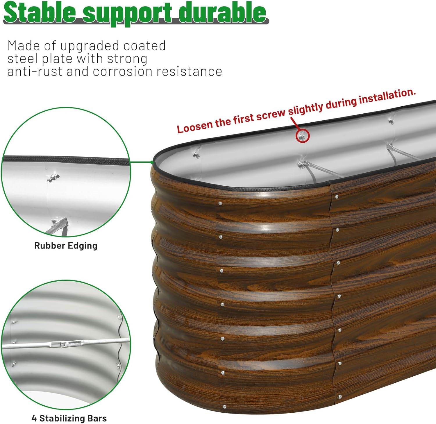 • Material: Crafted from galvanized metal, this product ensures durability while providing a stable and reliable foundation for all your outdoor planting needs