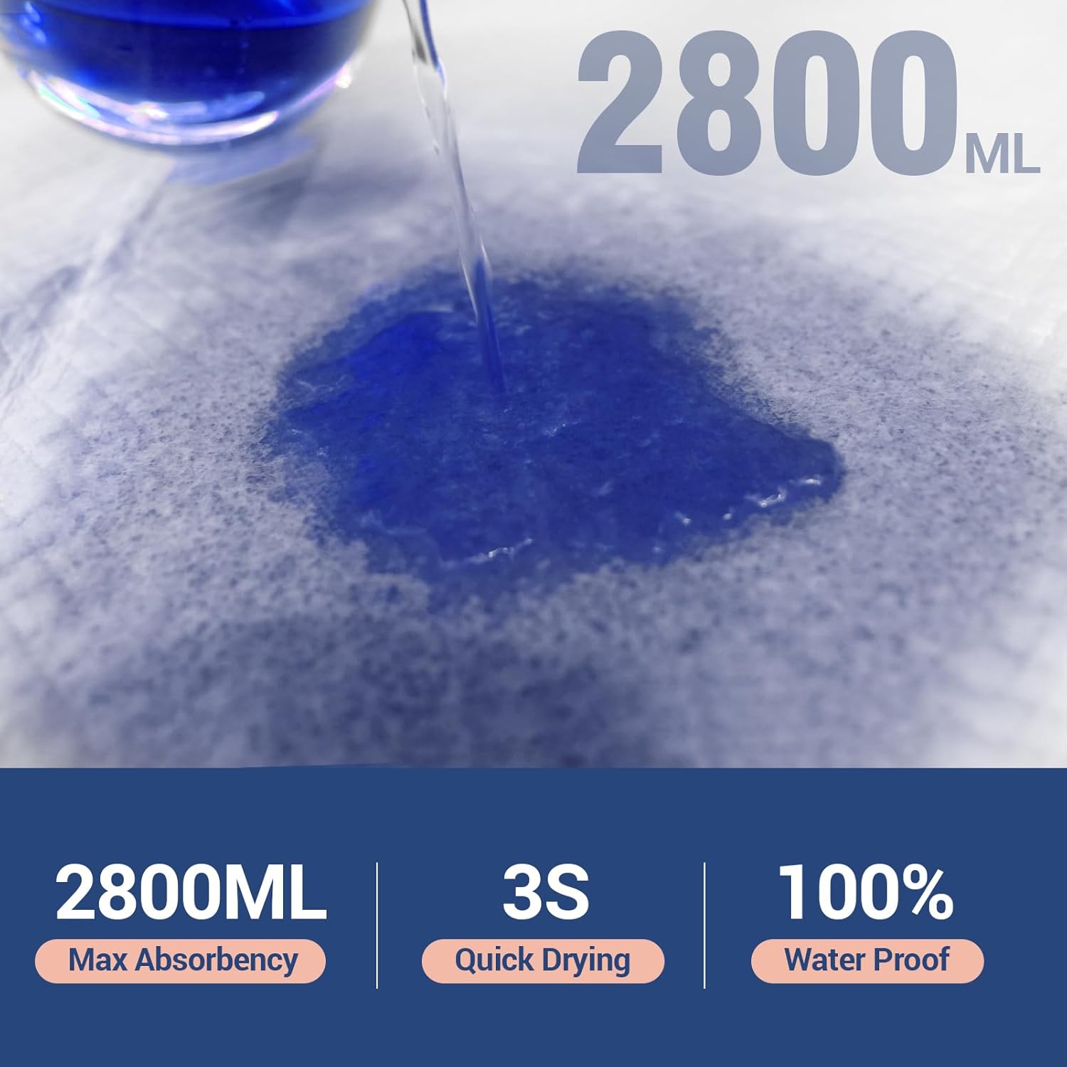 - 3XL For Bed Protection: Our bed pads disposable adult in size 40" x 36"(approx 101 x 91 cm) are bigger and thicker than most incontinence underpads. It provides a larger absorption area and stronger absorption capacity, effectively preventing liquid leakage from the surrounding