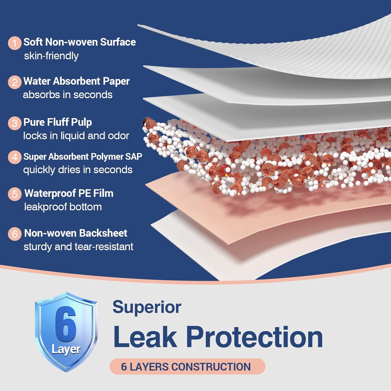 - Super Absorbency: With super absorbent polymer(SAP) material, our incontinence bed pads can hold up to 12 cups, then quickly turn liquid into gel and dry in seconds reducing the worry of dampness. Giving you 24-hour peace of mind