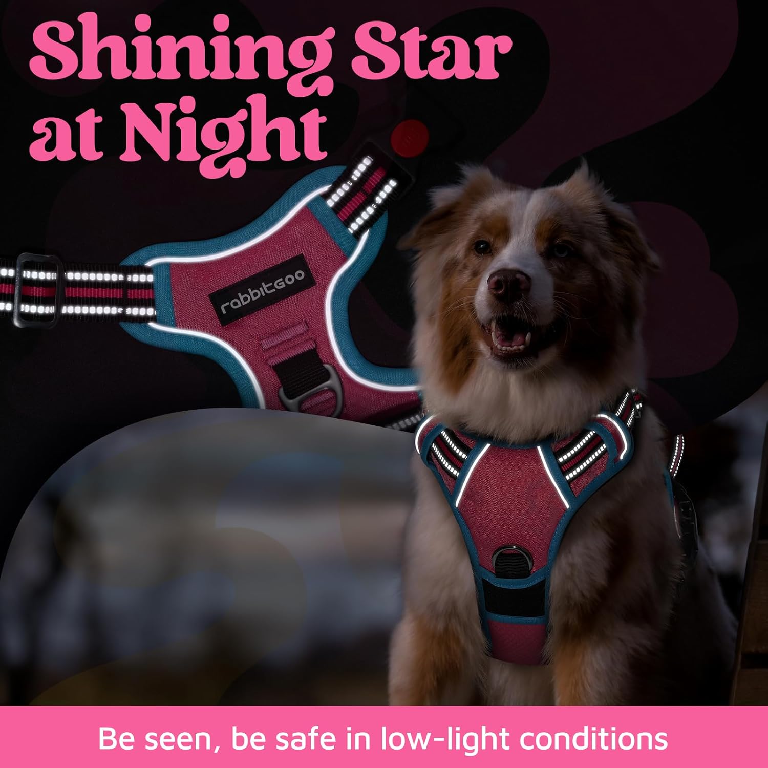 rabbitgoo Dog Harness for Large Dogs, No Pull Pet Vest with 3 Buckles, Adjustable Soft Padded Pet Harness with Easy Control Handle and Reflective Strips, Rose Pink & Blue, L