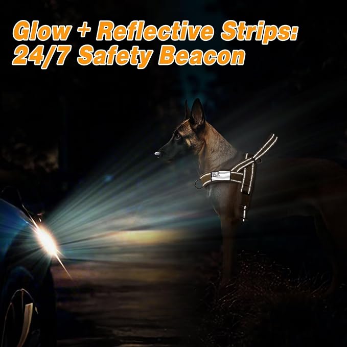 - Reflective Safety: Equipped with reflective strips, the no pull dog harness enhances pet safety during nighttime walks.Large O-ring,quick release buckle and soft padded handle all provide great help for you during daily walking or training exercises