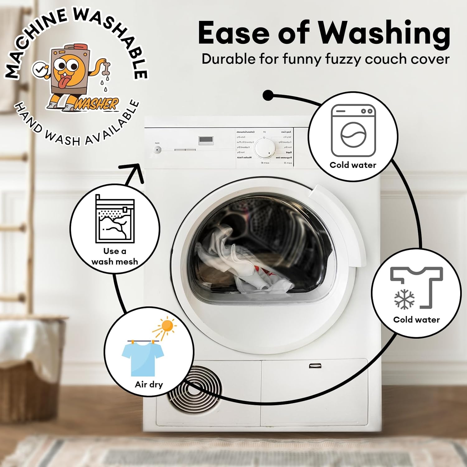 - Machine Wash for Simple Care: Make life easier with our couch cover for dogs washable, which can be easily cleaned by hand or machine. For long-lasting comfort, wash on a gentle cycle with mild detergent at a low temperature, and use a laundry bag to maintain its fluffy texture