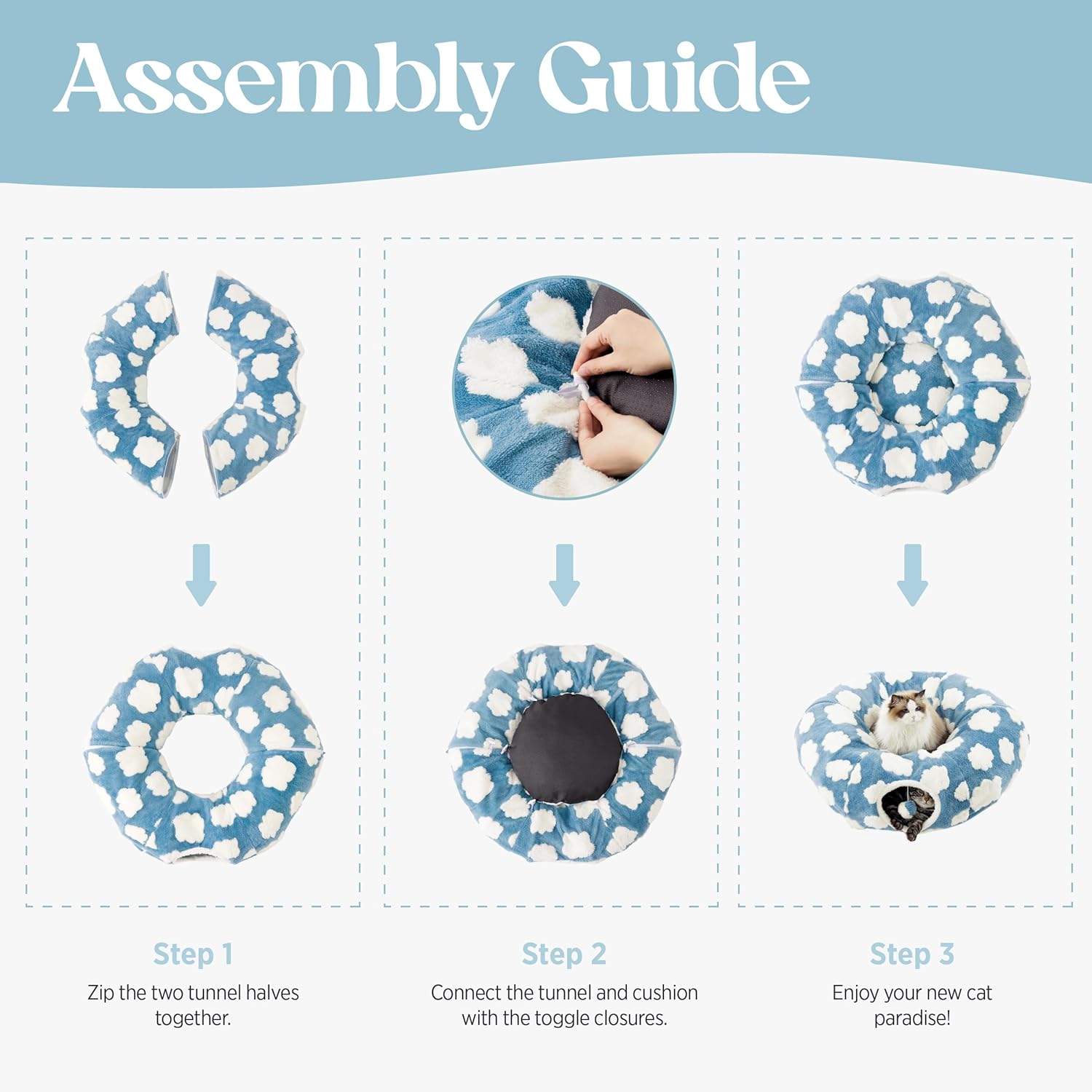- Hassle-Free Maintenance: Designed with your convenience in mind, this cat tunnel bed is effortless to assemble and quick to store. The removable inner bed is machine washable, ensuring easy clean-up. Plus, the non-slip, studded bottom keeps the tunnel securely in place, providing your pet with a stable and comforting space to relax and play.