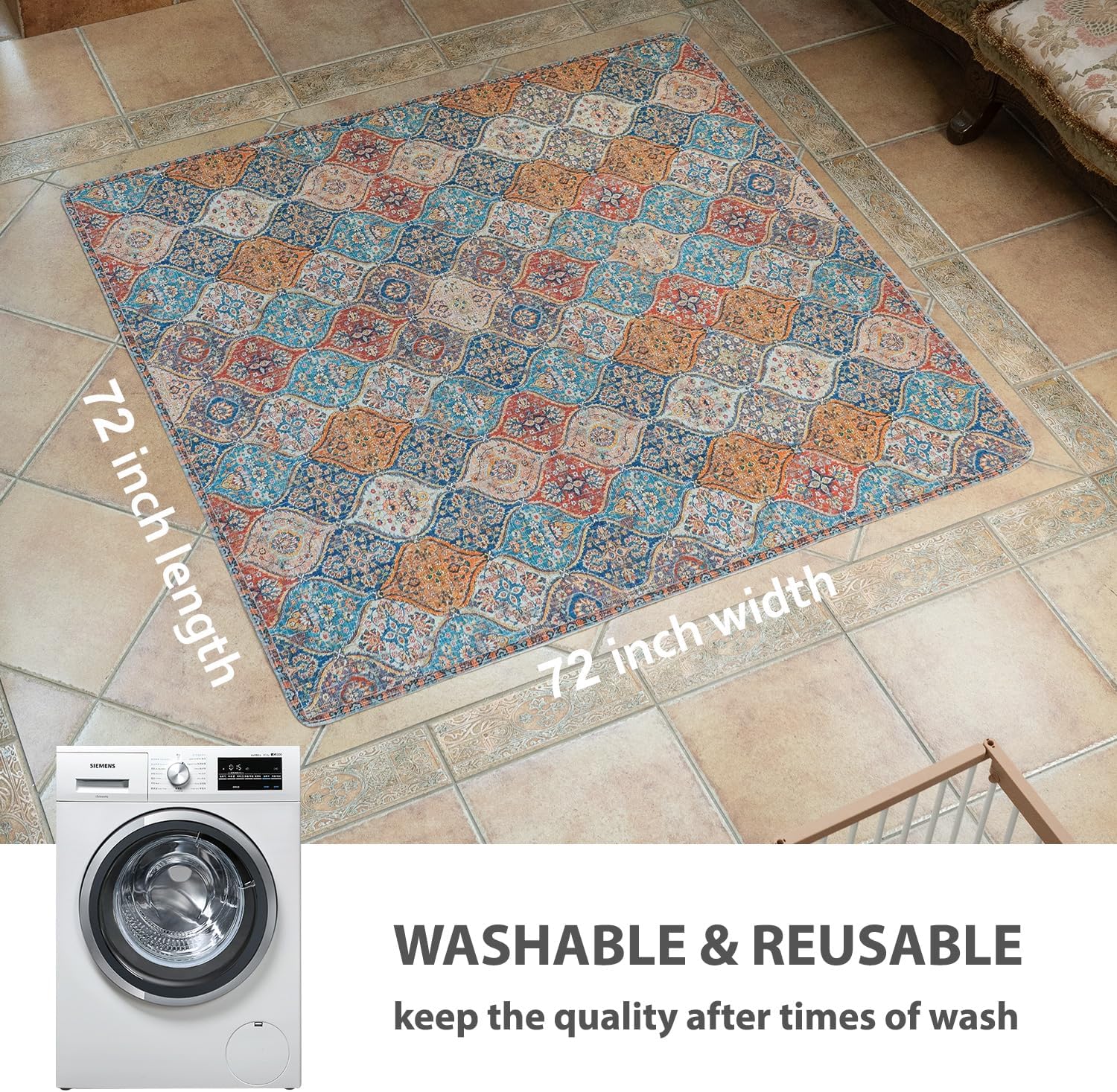nunubaby 2PACK Washable Pee Pads for Dogs, Stylish, Non-Slip and Leak-Proof Pee Pads. Reusable Potty Pads for Dogs for Crates and Floors.(Cream/Multi, 72" x72")